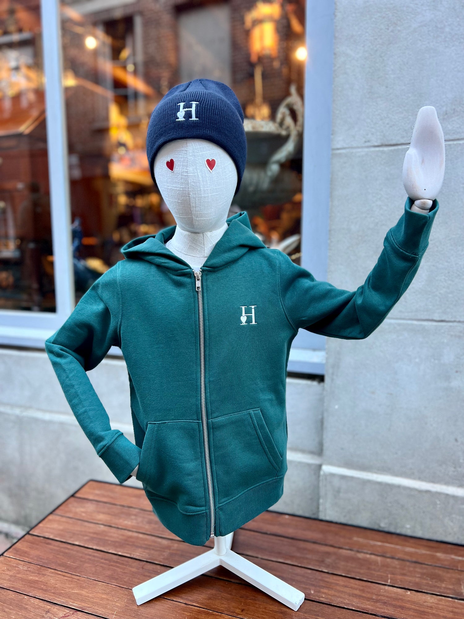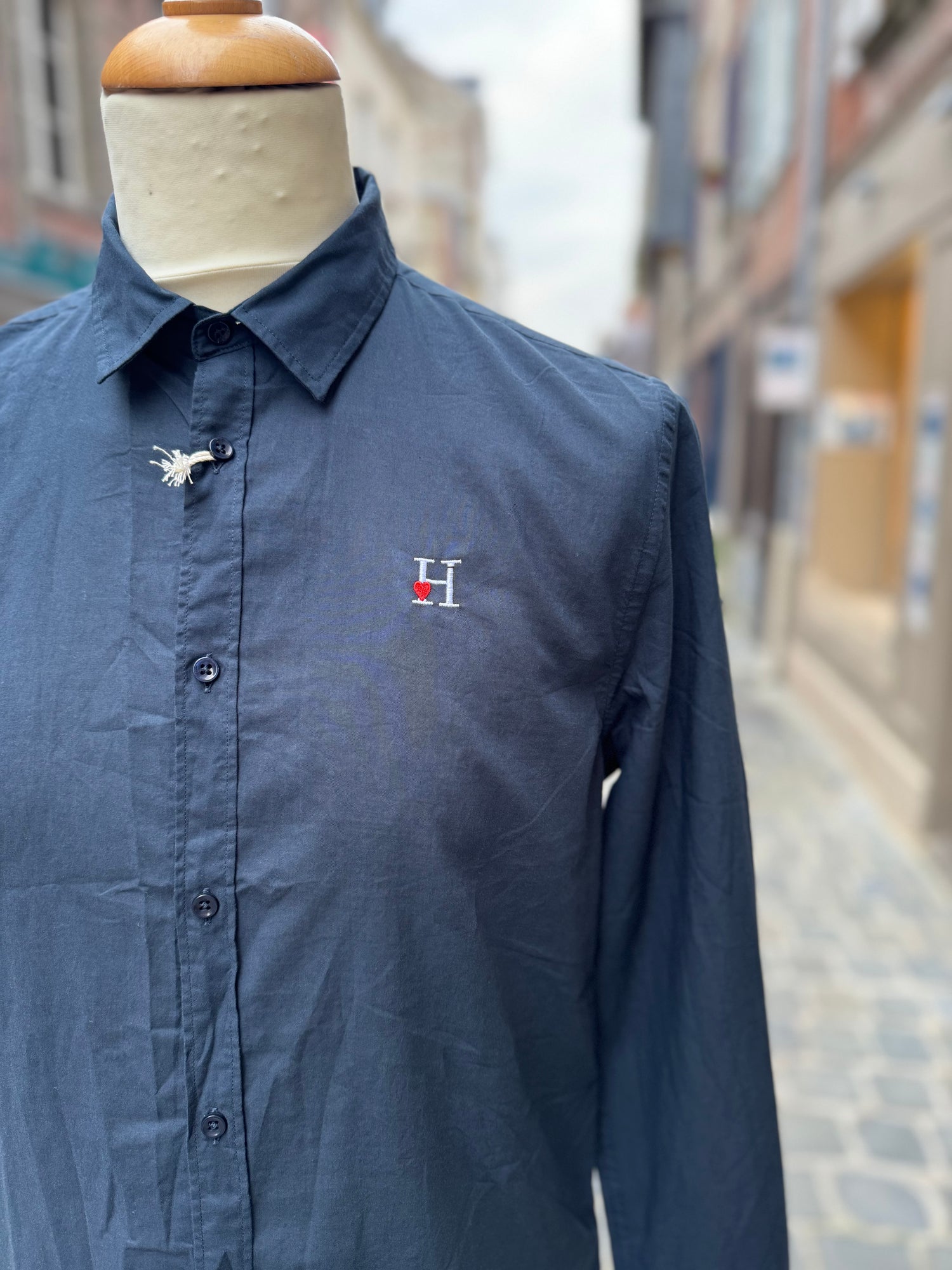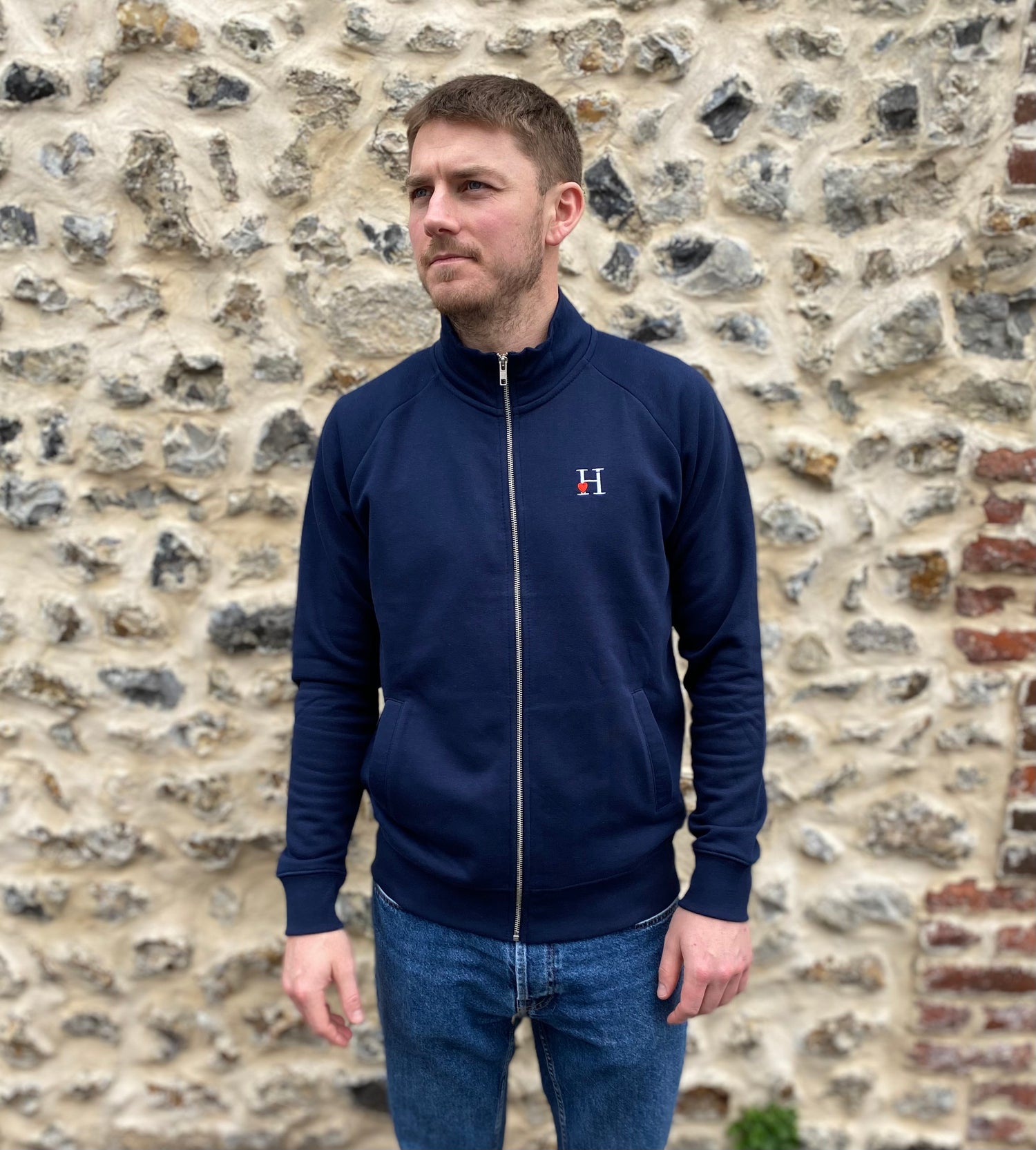 Gilet Zippé homme bleu, H brodé blanc et coeur rouge sur le...