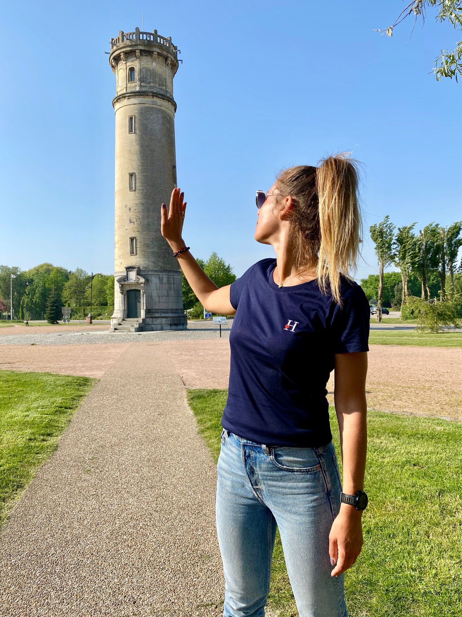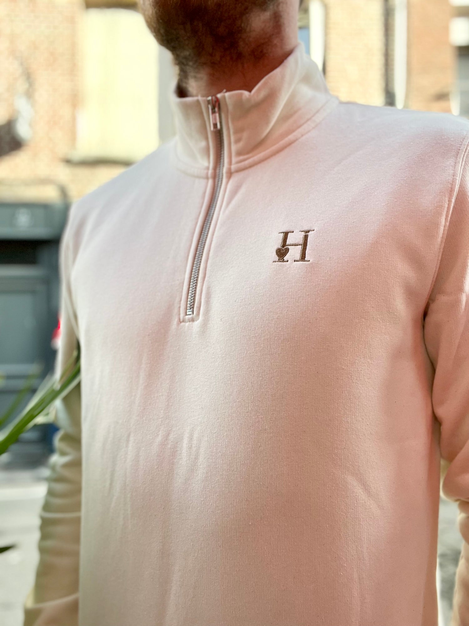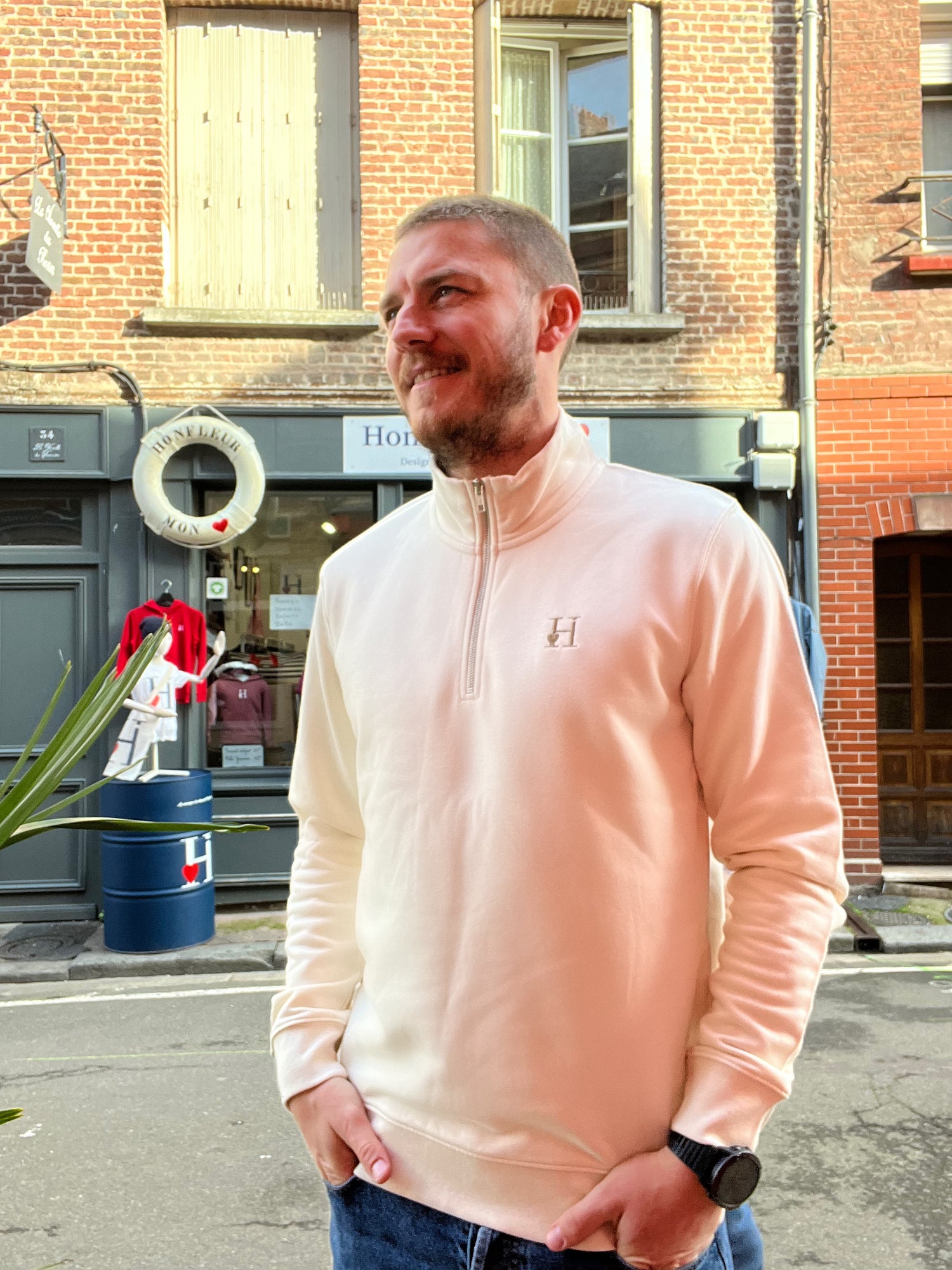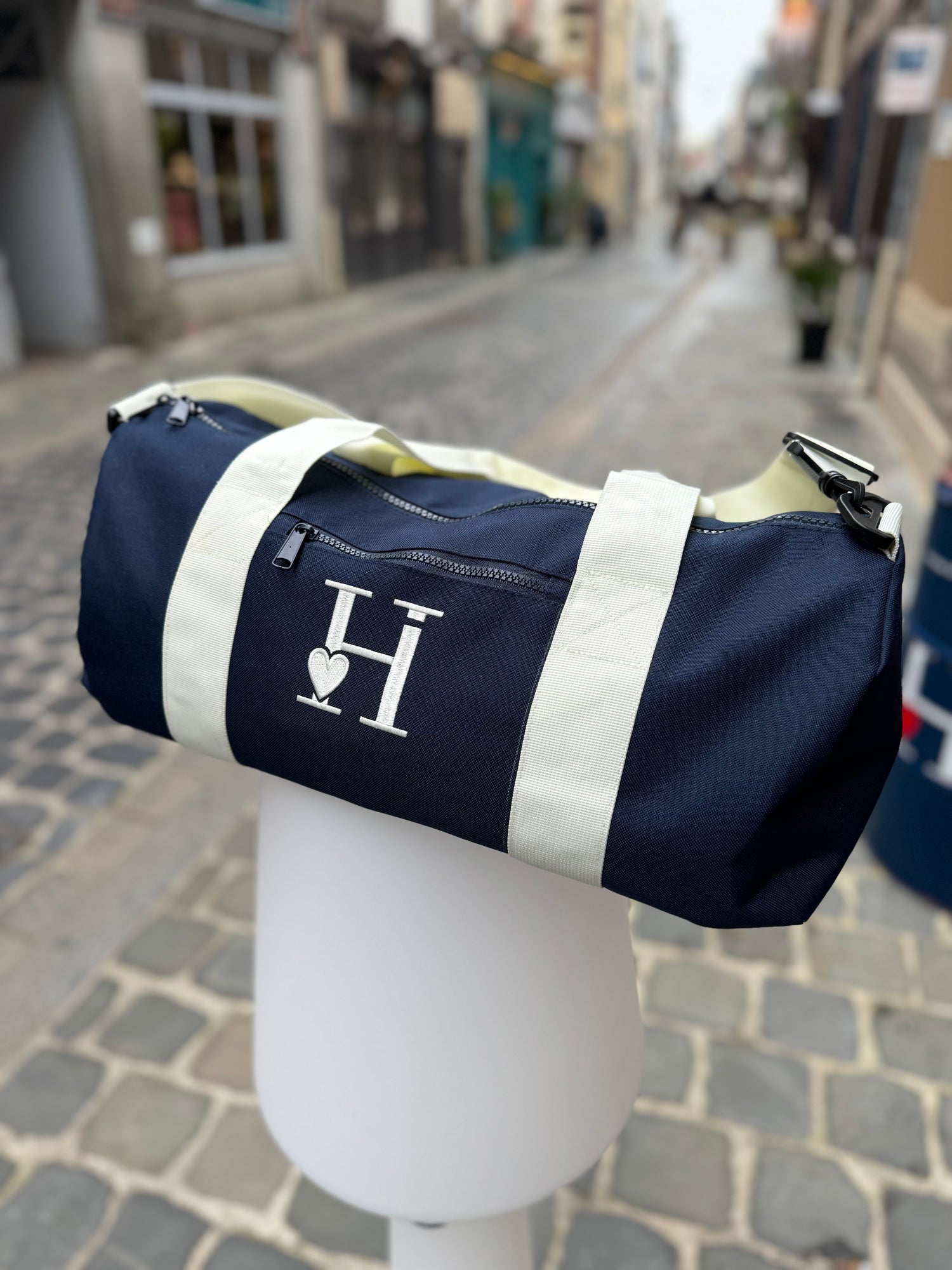 Gilet Zippé homme bleu, H brodé blanc et coeur rouge sur le...