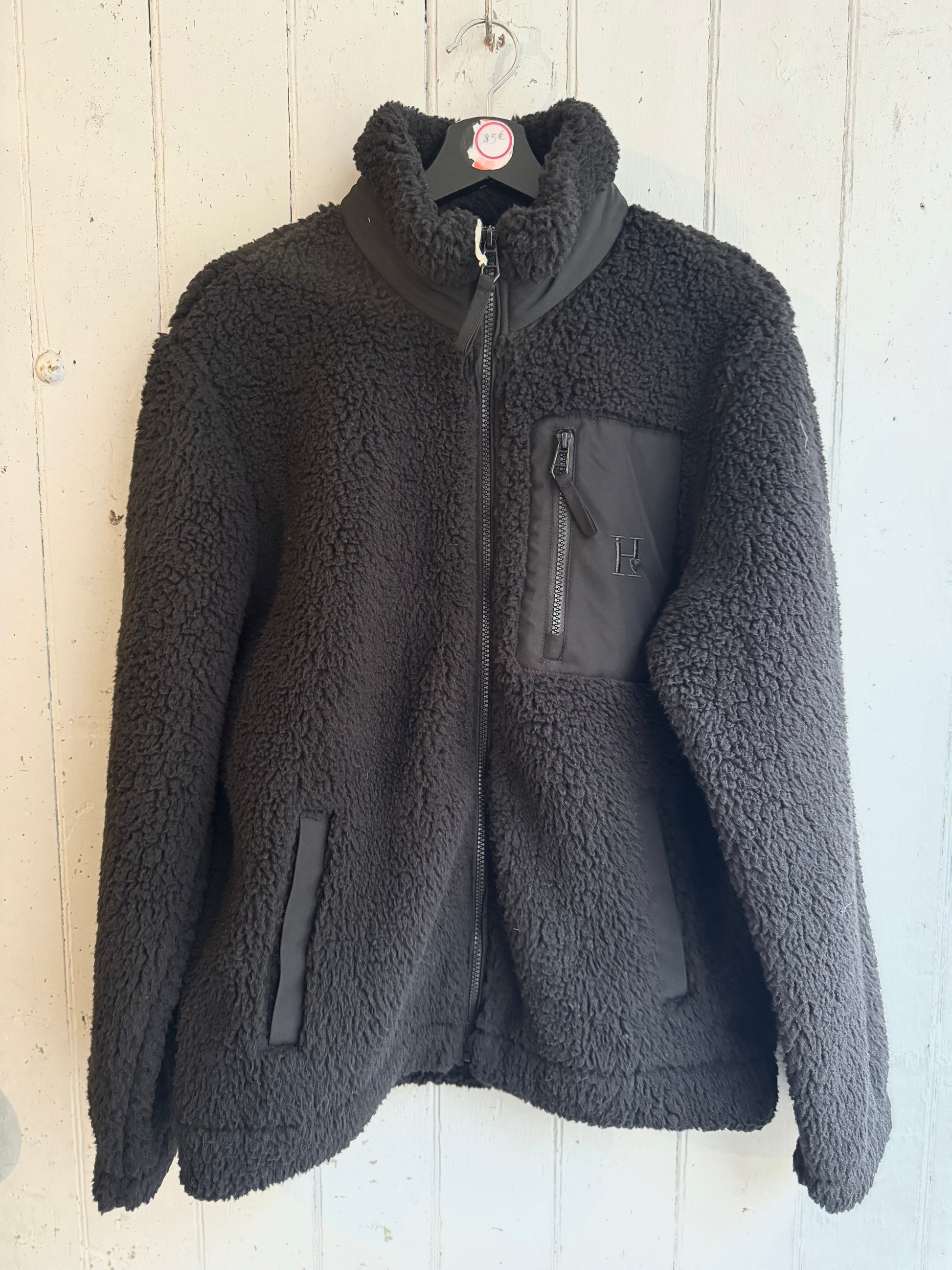 Sherpa noire manches longues Logo H brodé sur la poche.