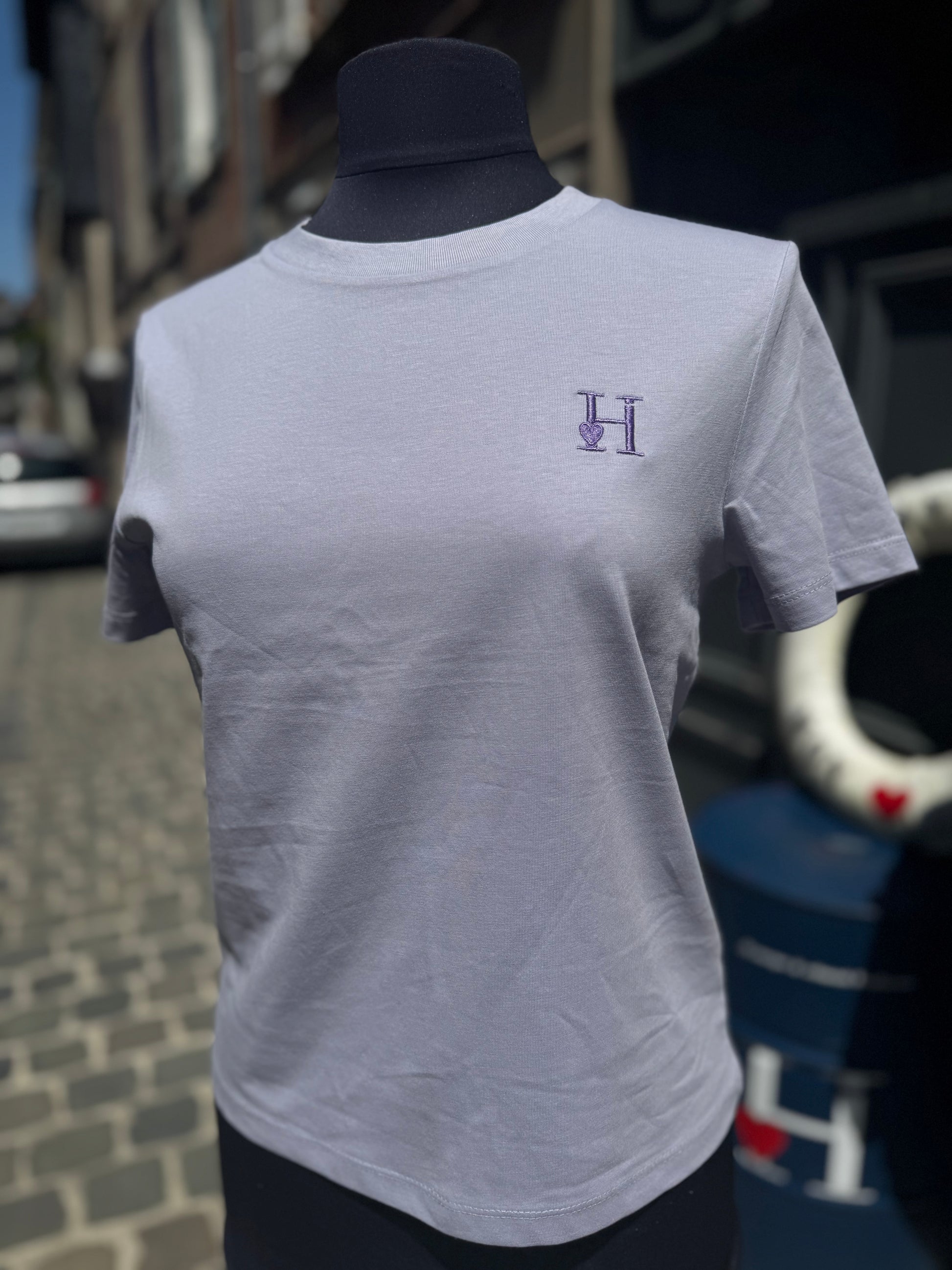 T-shirt femme lavande avec broderie du H en 3cm au cœur.